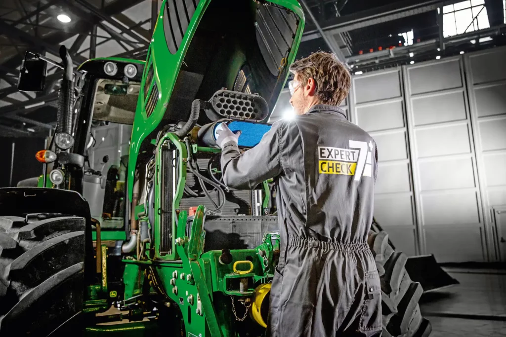 Expert Check w wersji 7+ jest zbliżony do istniejącego już programu i gwarantuje kompleksową, 140-punktową kontrolę specjalnie dla maszyn, które mają 7 lub więcej lat. Za pomocą tej listy kontrolnej dealerzy mogą przeprowadzić szczegółową diagnostykę techniczną dla szerokiego zakresu modeli. Expert Check 7+ jest dostępny nie tylko dla starszych modeli ciągników John Deere serii 6, 7 i 8, ale program obejmuje również opryskiwacze samojezdne, prasy zwijające i kombajny serii C, W i T.