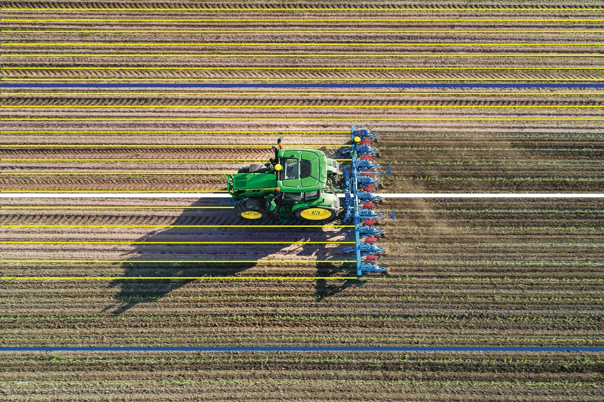 Większość procesów rolniczych wymaga wielu przejazdów, często po tych samych polach i ścieżkach. Wykorzystanie systemu naprowadzania AutoTrac (z opcją Turn Automation, czyli automatycznym nawracaniem) minimalizuje nakładki, omijaki, uszkodzenia upraw oraz zmniejsza koszty nasion i nawozów. Dodatkowymi korzyściami automatycznego prowadzenia są mniejsze wykorzystanie sprzętu oraz niższe zmęczenie i zaangażowanie (również czasowe) operatora. Naprowadzanie umożliwia także używanie tych samych ścieżek przejazdu rok po roku, minimalizując powierzchnię pola podlegającą oddziaływaniu ciężkiego sprzętu i tworząc twarde odcinki gleby do wydajnej pracy ciągnika. Niesamowita precyzja (ok. 2,5 cm) dzięki odbiornikowi StarFire w połączeniu z płynnością przekazywania danych przez system JD Link pozwalają budować nowe cyfrowe kompetencje rolników. Dzięki sygnałowi SF-RTK lub RTK można szybciej rozpocząć pracę po przyjeździe na pole i skorzystać ze 100% lepszego pokrycia przy znacznie zmniejszonych efektach zacienienia. Używanie całego systemu prowadzi także do realnej oszczędności aż 5% paliwa przez ograniczenie nakładek oraz efektywnej pracy na uwrociach.